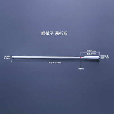容易破碎的医用级ABS棉签,不干扰病毒PCR测试。那里有不同断点的拭子可供选择,可满足各种取样方法的要求。